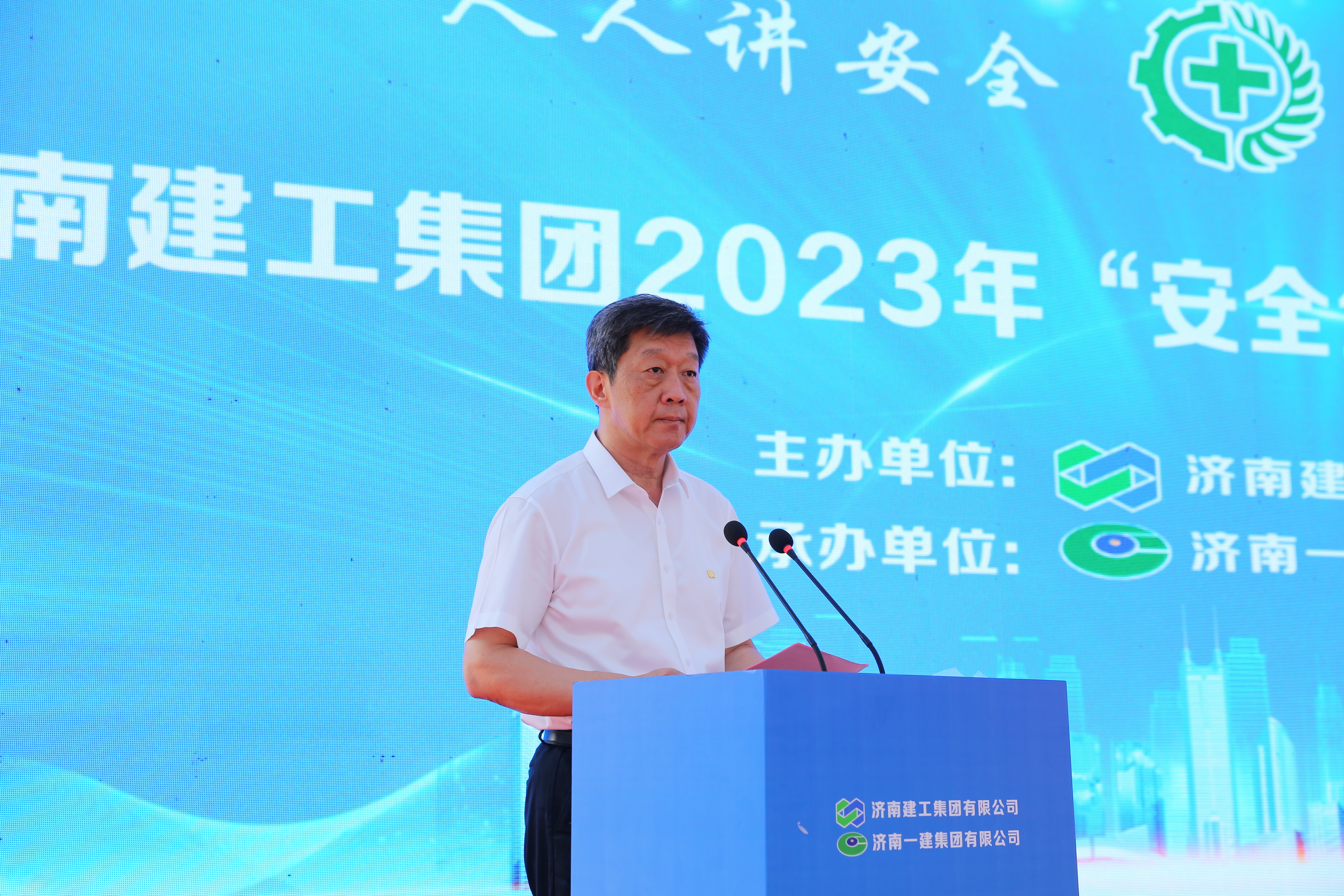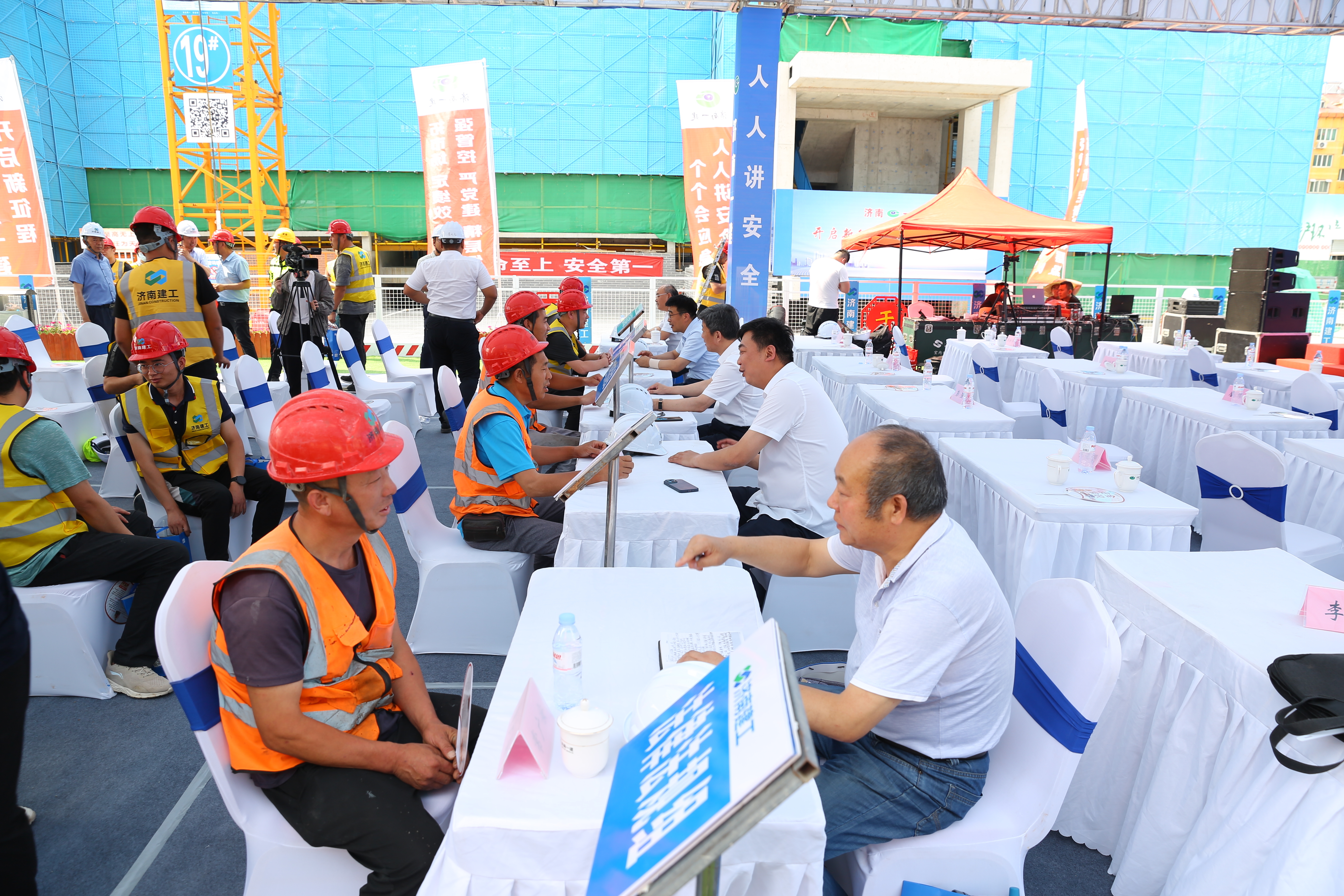 為深入貫徹全國(guó)第22個(gè)“安全生產(chǎn)月”活動(dòng),進(jìn)一步普及安全生產(chǎn)知識(shí),增強(qiáng)全體職工安全意識(shí)和自救互救能力,切實(shí)加強(qiáng)安全生產(chǎn)管理人員人才隊(duì)伍建設(shè),提升安全生產(chǎn)管理水平,濟(jì)南建工集團(tuán)于6月16日在濟(jì)南一建中博謙崇云境建設(shè)項(xiàng)目一期工地成功舉辦“安全宣傳咨詢?nèi)?rdquo;活動(dòng)。集團(tuán)黨委委員、副總經(jīng)理張軍,安全環(huán)保部負(fù)責(zé)人,集團(tuán)所屬一級(jí)企業(yè)安全總監(jiān)、安全環(huán)保部負(fù)責(zé)人等參加活動(dòng)。